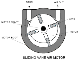 Pneumatic Rotary Actuator: A pneumatic rotary actuator conveys rotary movement using pneumatic energy or air pressure. There are two types of pneumatic rotary actuators: continuous rotary movement and limited rotary movement. The continuous rotary motion pneumatic actuator is sometimes referred to as a pneumatic motor. This motor delivers a constant rotary motion by utilizing a pneumatic pressure line. Based on their structure and working principle, pneumatic motors can be classified into three types: piston motor, sliding vane motor, and gear motor. The image below depicts a sliding vane pneumatic motor.
